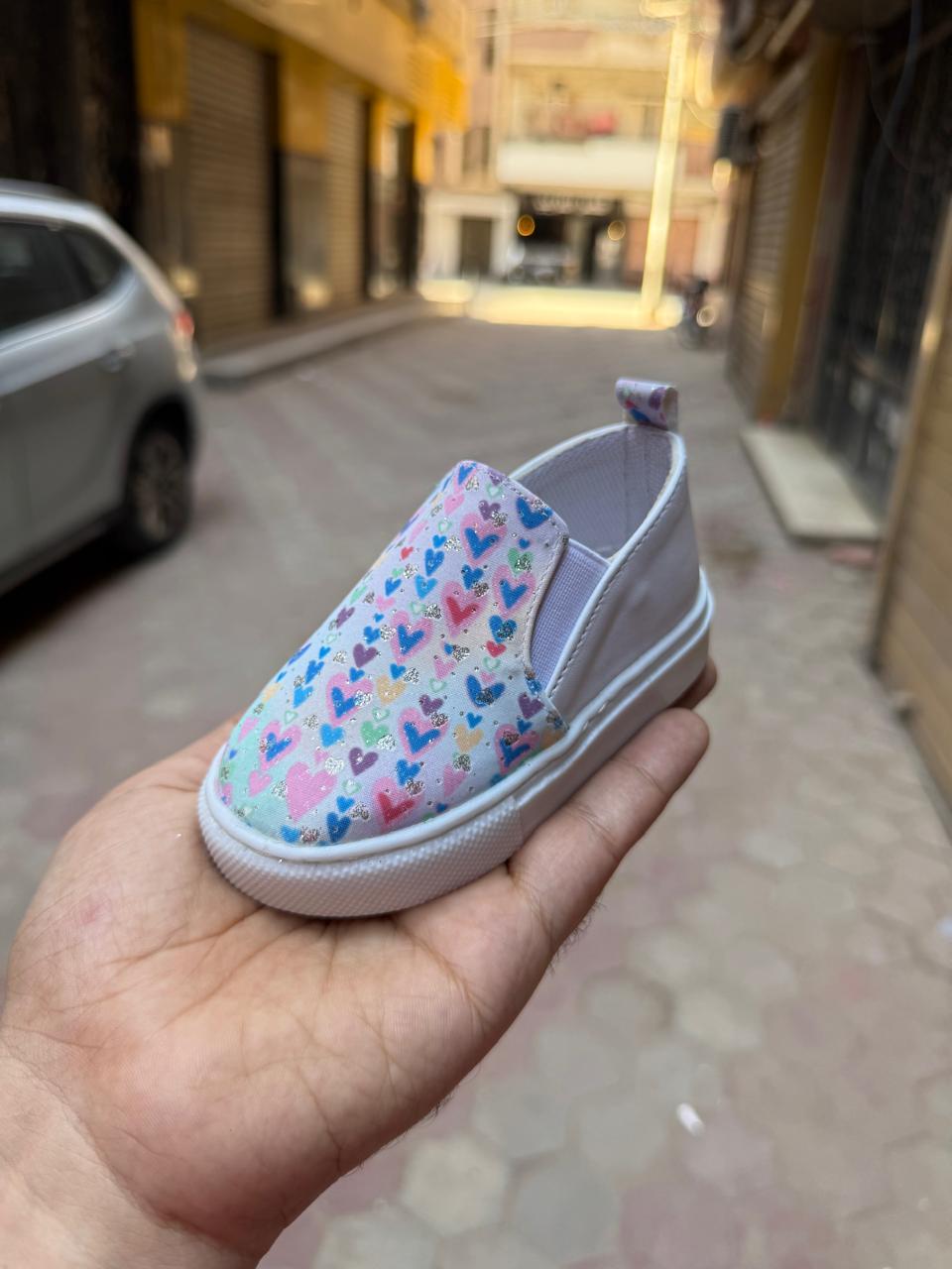 ممكن نتأكد من المقاس بأننا نقيس قدم الطفل بالسنتي ( بدون زيادة ) بأي مسطرة او متر ، و نزود 1 سم فقط علي القياس و نختار المقاس من جدول المقاسات