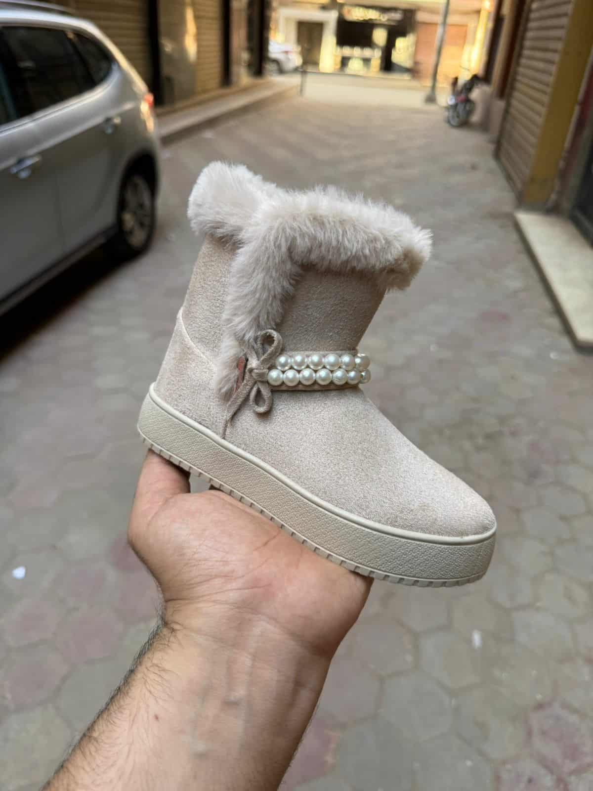 ممكن نتأكد من المقاس بأننا نقيس قدم الطفل بالسنتي ( بدون زيادة ) بأي مسطرة او متر ، و نزود 1 سم فقط علي القياس و نختار المقاس من جدول المقاسات